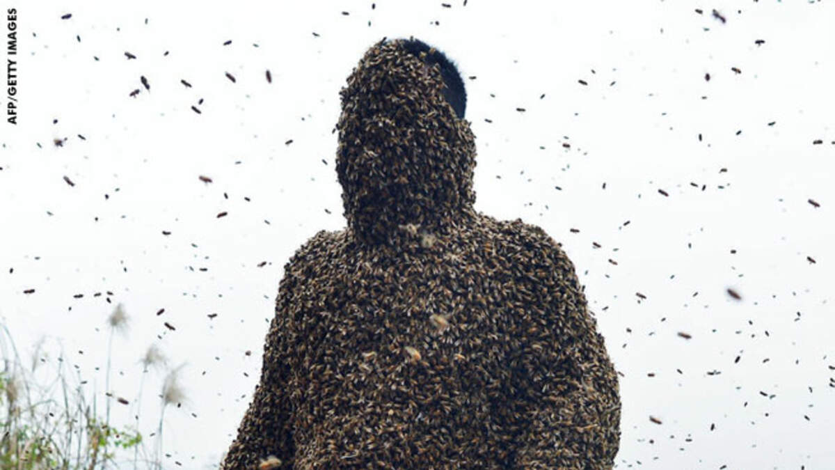Chinese beekeeper She Ping covered his body in a coat of living bees during a publicity stunt this week. Using a technique known as "bee bearding," a swarm of 460,000 bees weighing more than 100 pounds completely covered Ping's body. He was stung over 20 times during the 14-minute ordeal. Check out more photos at Huffington Post.